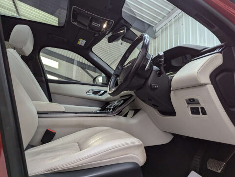 + PAN ROOF STUNNING COLOUR COMBO 20in ALLOYS + SOURCE – This stylish Range Rover Velar R-Dynamic S D240 has been sourced from a car supermarket group, who took it in part exchange. It’s a stunning example of this sleek and capable SUV, boasting a striking colour combination and premium features throughout. OWNERSHIP – Just one previous owner from new, reflecting careful use and proper upkeep. SERVICE HISTORY – Supplied with comprehensive service history, this Velar will also be fully mechanically prepared by ourselves prior to sale and comes with a brand new 12 month MOT for total peace of mind. PRESENTATION – Finished in breathtaking Firenze Red metallic, this Velar looks exceptional against the 20in 10 Spoke alloy wheels. Inside, it features Perforated Windsor Leather in Light Oyster with Ebony contrast, offering a refined and modern cabin environment. The panoramic glass roof floods the interior with natural light, enhancing the premium experience. ADDITIONAL INFORMATION – Powered by the robust and efficient 2.0L D240 twin-turbo diesel engine, this Velar offers excellent performance with smooth automatic transmission and 4WD capability. The vehicle is HPI clear, with verified mileage, and comes with two keys.