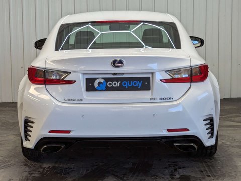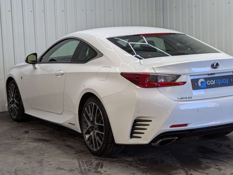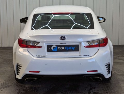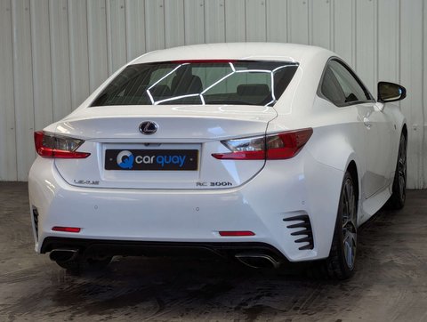+ F SPORT FULL HISTORY 7 SERVICES STUNNING + SOURCE – This superb Lexus RC 300h F Sport has been received by ourselves in part exchange at Car Quay against a Jaguar F-Type, reflecting the calibre of vehicle it has been associated with. OWNERSHIP – It has been well maintained by its three previous owners from new. SERVICE HISTORY – The vehicle benefits from a full service history with 7 recorded services, demonstrating excellent maintenance. It will also be fully mechanically prepared by ourselves prior to sale and supplied with a brand new 12 month MOT. PRESENTATION – Finished in striking F Sport White, this RC has a sharp and distinctive road presence. It rides on impressive 19in F Sport darkened alloy wheels, perfectly complementing the aggressive coupe styling. The interior is beautifully appointed in Black smooth F Sport leather, creating a premium and driver-focused cabin. With just 31,000 miles, this is a genuinely low mileage, stunning example that presents exceptionally well throughout. Powered by the refined 2.5 litre petrol hybrid engine, the RC 300h delivers smooth, quiet performance through its CVT transmission, blending efficiency with sporting design and Lexus reliability. ADDITIONAL INFORMATION – The vehicle is completely HPi clear, with no outstanding finance and not subject to any insurance loss or theft. The mileage is verified as genuine. The buyer will be supplied with the V5 registration document, full service history, both keys, MOT certificate and a HPi clear certificate. All vehicles are supplied fully valeted prior to sale and with a nationwide warranty. Part exchange is very welcome and finance options are available – please call us today for a tailor-made quotation. ABOUT US – We are a family owned, multi award winning car dealership with up to 200 quality used vehicles in stock. With up to 100 images per car, walk around videos, bespoke finance quotation tools and the ability to reserve vehicles too, head over to carquay.co.uk and get in touch with our team today. Take a moment to read over 1500 genuine 5 star reviews about our business and keep up to date with what's happening on our social media