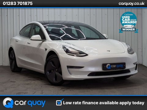 + VAT QUALIFYING BATTERY HEALTH CERTIFIED READY TO DRIVE AWAY + SOURCE – This excellent Tesla Model 3 Long Range AWD has been sourced directly from a company, offered VAT qualifying, making it ideal for business users or export. A superb example of Tesla’s cutting-edge electric saloon, with long range capability and all-wheel-drive performance. OWNERSHIP – Just one owner from new, clearly well cared for with only 50,000 miles covered. BATTERY & CONDITION – A battery health check has been completed and passed with certification supplied, confirming the excellent condition of its 78 kWh battery, offering an impressive 389-mile WLTP range. This car has been fully prepared by our team and is ready to drive away today including a new full 12 month MOT. PRESENTATION – Finished in clean Pearl White with sleek 18in Aero alloy wheels, this Model 3 looks smart and modern. The cabin is trimmed in Premium Engineered Black material, offering a minimalist, high-tech environment with Tesla’s intuitive infotainment and driver assistance systems. ADDITIONAL INFORMATION – Dual motor all-wheel drive provides surefooted handling in all conditions. The vehicle is HPI clear with verified mileage. Comes with 2 keys, its V5 registration document, battery certificate and full pre-sale documentation. All vehicles are supplied valeted prior to sale, with a nationwide warranty included. Finance available and part exchange welcome – contact us today for a tailored quote. PLEASE NOTE – To avoid disappointment, please call before travelling to ensure the vehicle is available and not reserved. ABOUT US – We are a family-owned, multi-award-winning dealership with up to 200 quality used cars in stock. Visit carquay.co.uk to browse 100+ photos per car, reserve online, use finance calculators and more. Join thousands of happy customers – read over 1500 genuine 5-star reviews today